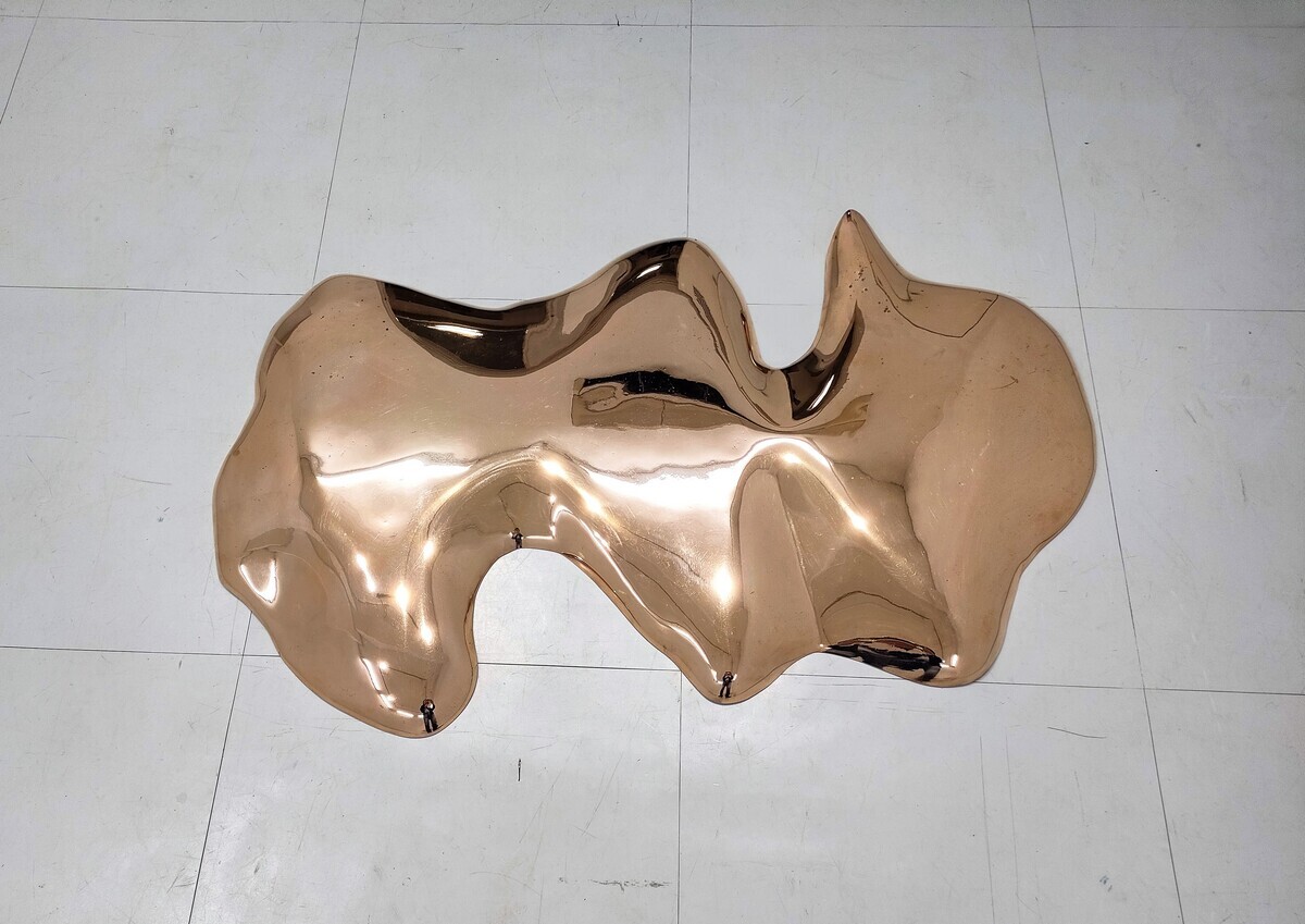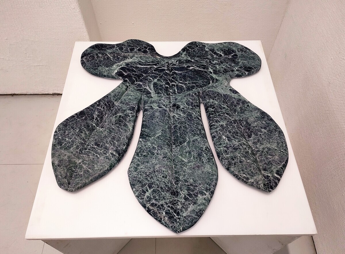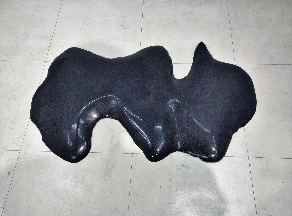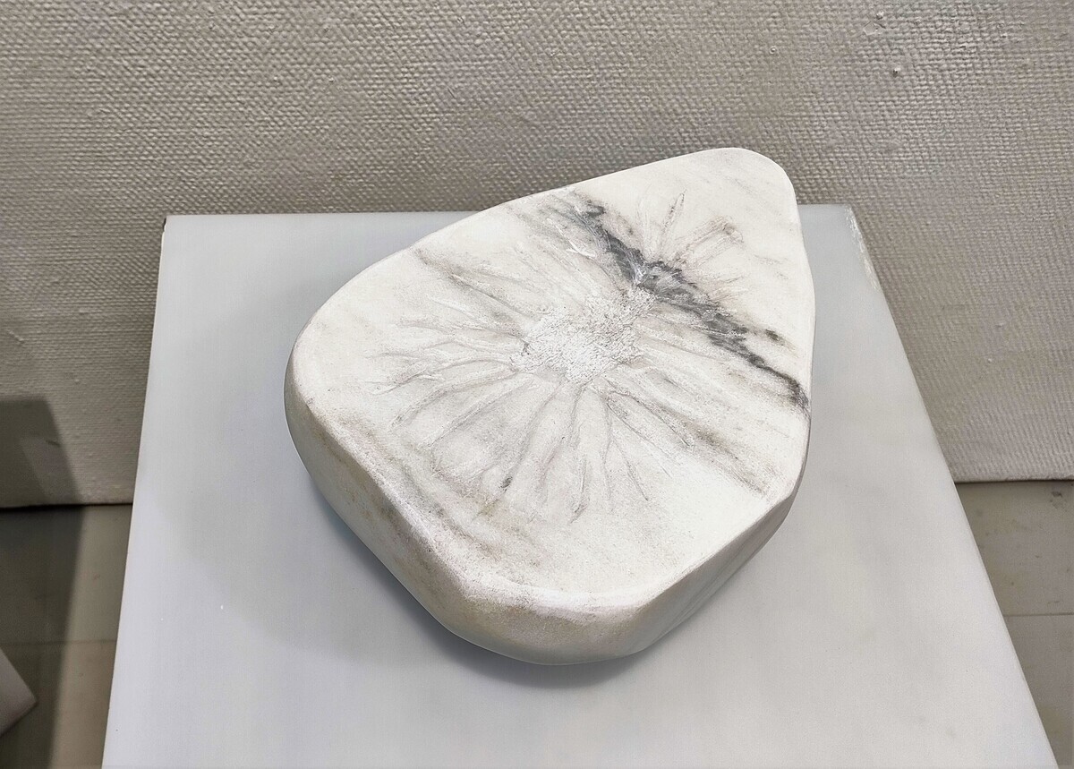 2016年の展示では、畑の堆肥(土壌改良剤)を使用したインスタレーション様の一回性の彫刻作品で彫刻とメディウムの関係性について掲示しました。今回の展示では石で彫った原型(黒御影石)とブロンズに鋳抜いた鏡面仕上げの作品を併置して比較します。新作として、大理石を使用した作品を2点展示します。