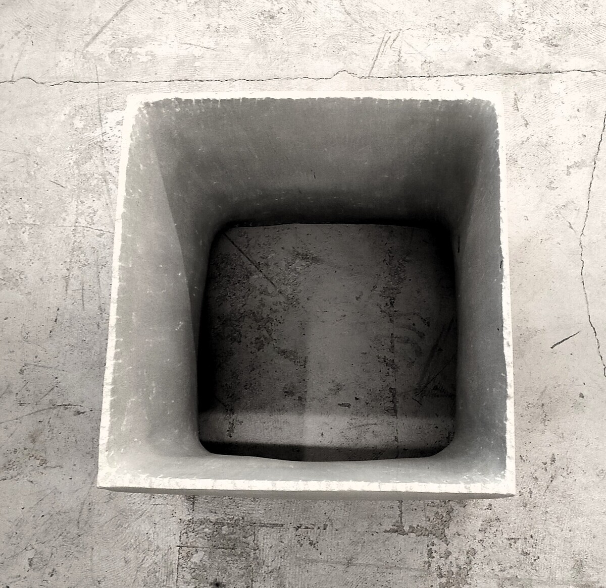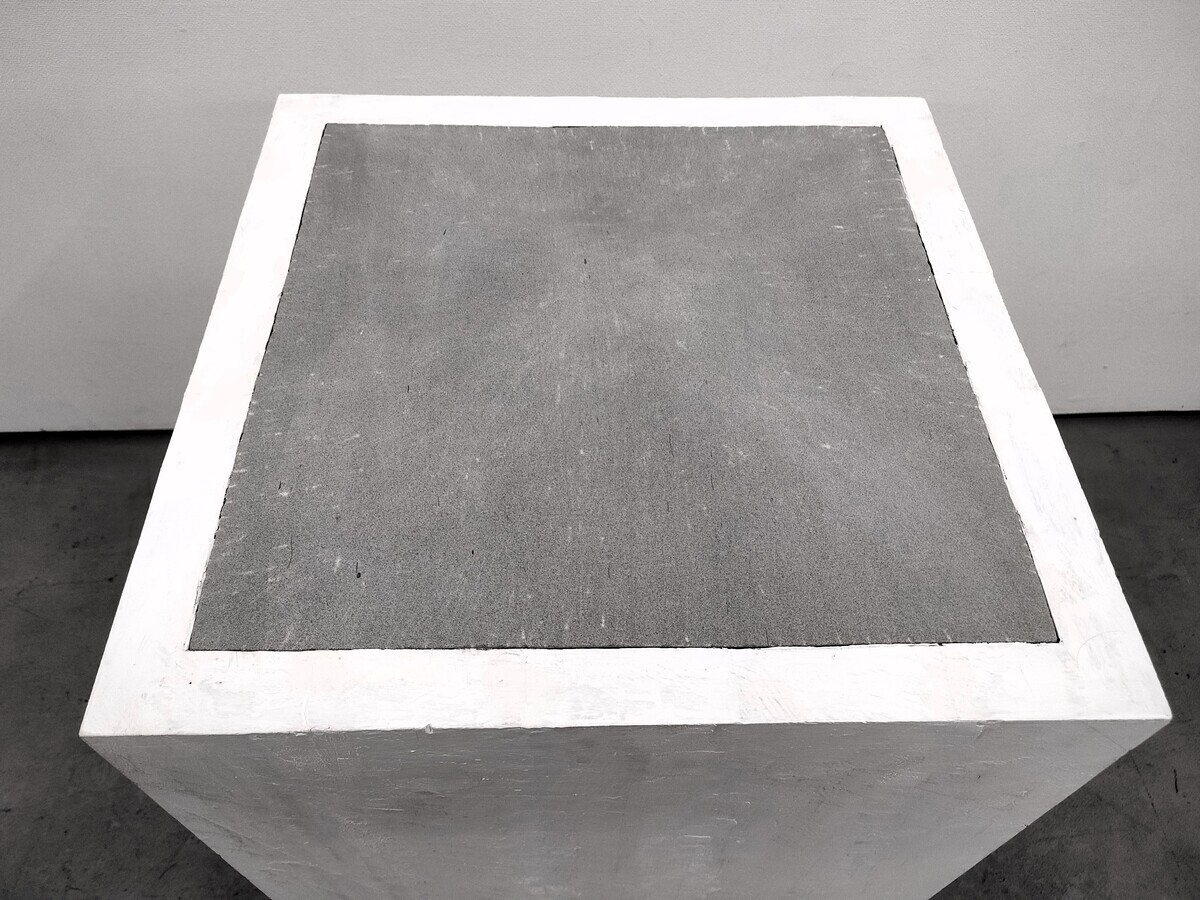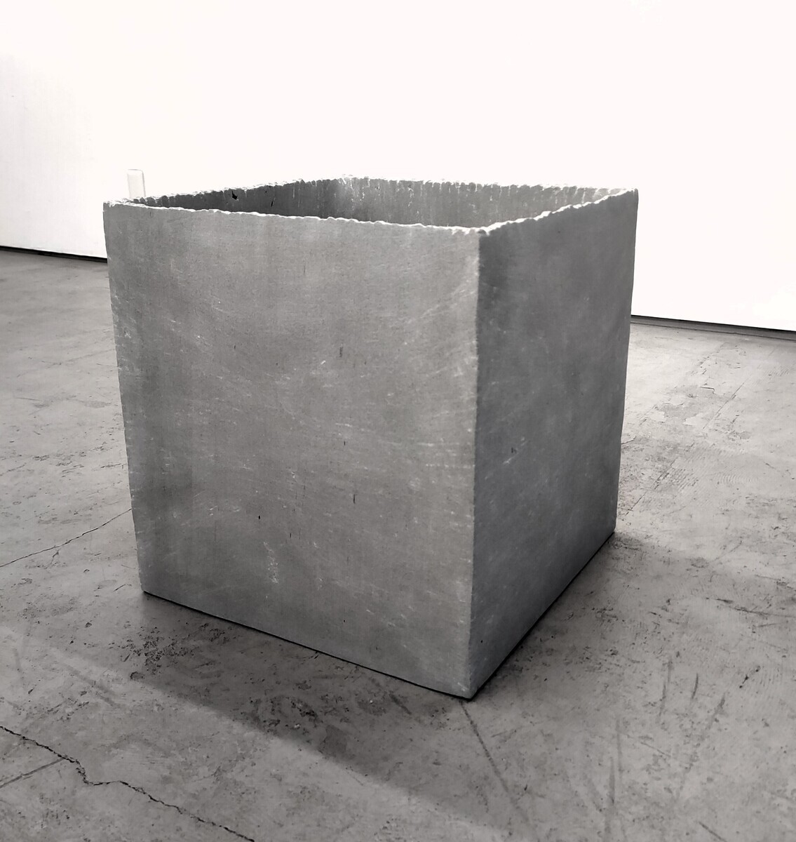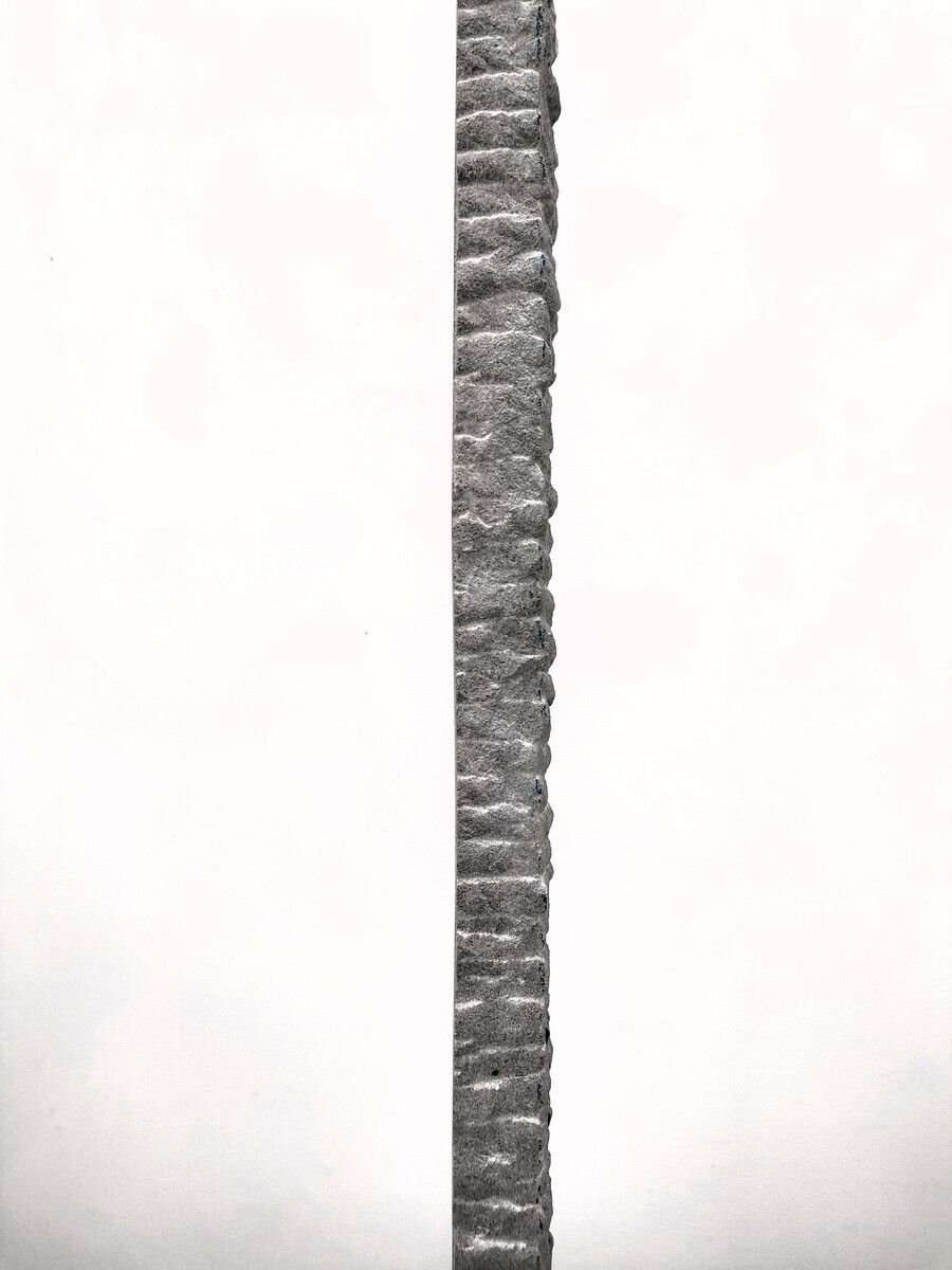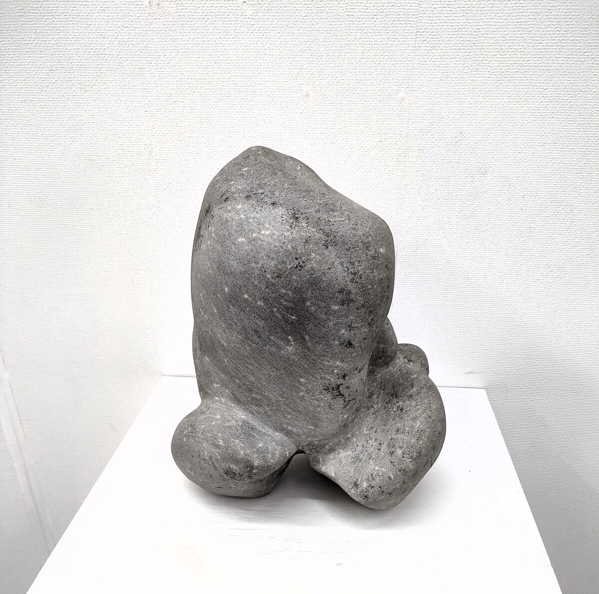 丸山は砂岩を使った石彫を発表してきた。平面をL字型に曲げたような造形だ。それが去年のいりや画廊での個展では砂岩の板のような作品を展示していた。今回は板のようにも見える作品や、底がない箱のような作品、屹立する柱のような作品が並べられている。箱のような作品はかつてのL字型の作品の展開のようにも思える。