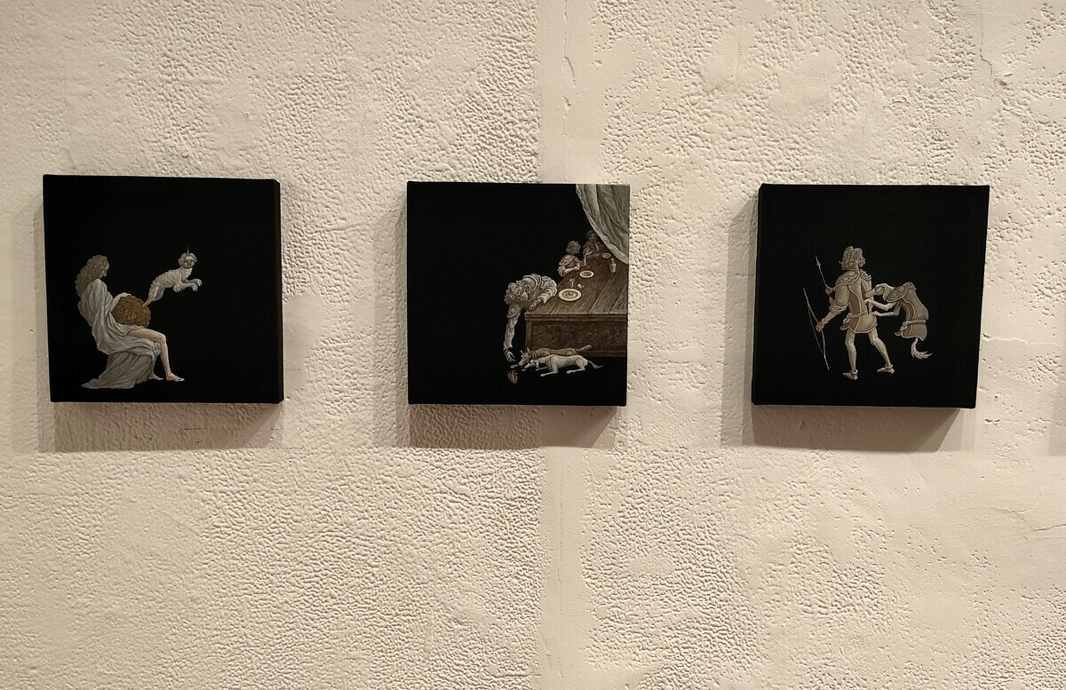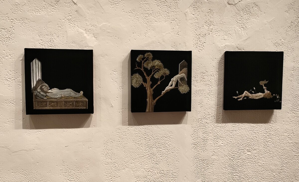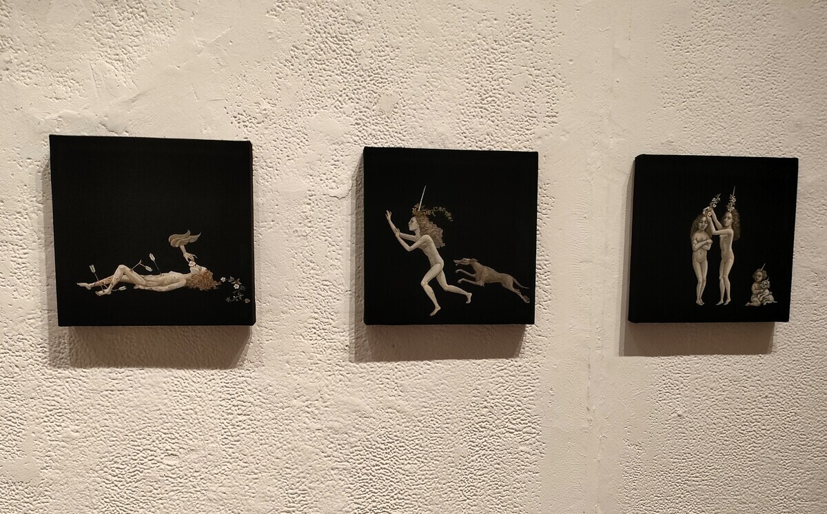 菅野まり子を除いて皆大作を展示している。菅野は小品8点を展示しているが、それらは連作で、川野芽生『闇の奥に』と、ボッカッチョ『デカメロン』から採られているようだ。紹介した小品は9点だが、1点が重複している。